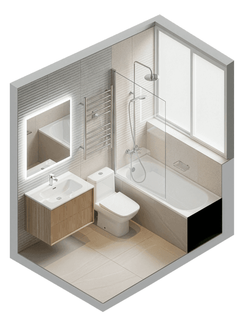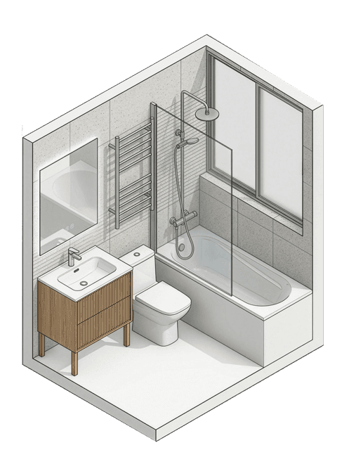 Para baños de hasta 5 m², donde la distribución funciona bien, pero todo necesita renovarse. En 15 días con tu arquitecto directamente a cargo.